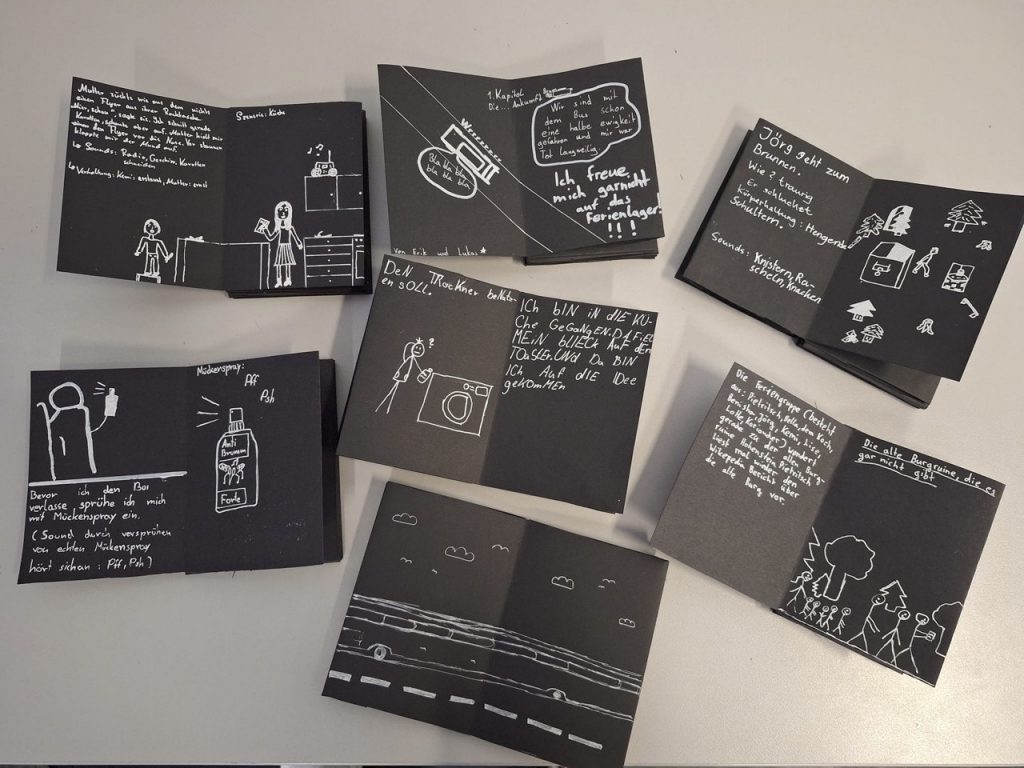 Die Abschlusspräsentation steht für eine sehr intensive Begegnung zwischen den Kindern und den Künstler*innen. Entstandenes bildnerisches und szenisches Material und ein handsigniertes Buch erinnert in den Schulen noch lange an ein Theatererlebnis der besonderen Art.