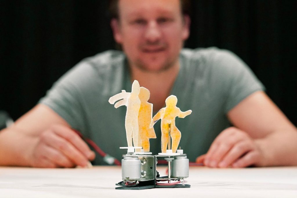 Ugo Dehaes ist zurück bei Theater der Dinge! Nachdem er bereits 2023 das Berliner Publikum mit tanzenden Robotern verzaubert hat, beschäftigt er sich in seiner neusten Produktion mit der atemberaubenden Komplexität des menschlichen Körpers: Für »Moving Skin« erforscht er die Mechanismen unseres Skeletts, lässt die Haut tanzen, baut Muskeln nach und versucht, leblose Materialien zum Leben zu erwecken – in der Hoffnung, seine Choreografien für immer bewahren zu können.
