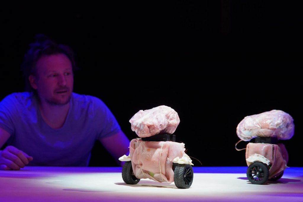 In seiner einmaligen Mischung aus Robotik, Tanz, Zukunftssatire und Philosophie erschafft der belgische Künstler einmal mehr ein Stück einzigartiges Theater: Eine Hommage an die zeitlose Faszination des Körpers und seine innere Schönheit, gleichzeitig ein Trip in Geschichte und Zukunft vom Zusammenspiel von Mensch und Technik auf und hinter der Bühne.