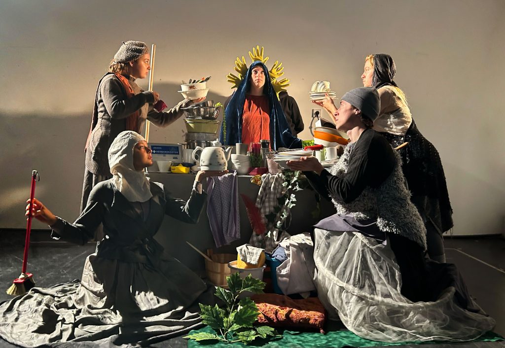 More and more women are refusing to provide care work and are just lying down on the job. No pamphlets, no slogans, no posts – it’s all been said. Beginning with the celebrated novel by the writer Mareike Fallwickl, this year’s studio production tells the story of the influencer Elin, the nurse Ruth and the bicycle courier Nuri, whose paths cross during the days of standstill. You can look forward to an evening with puppets, a lot of music and silence about solidarity and the relationship between the sexes.